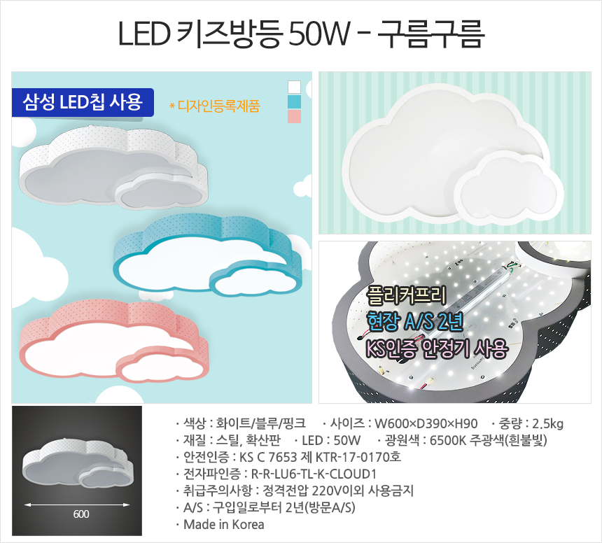 LED 구름구름 50W 방등/삼성정품칩/키즈방등/인테리어방등/LED방등/아이방꾸미기 이미지/