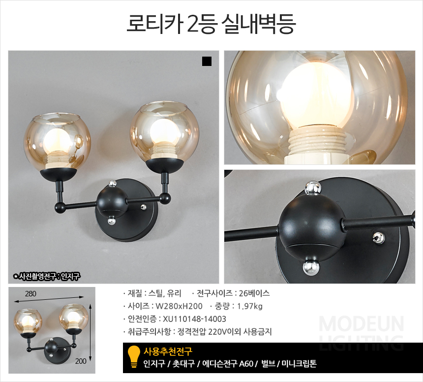 로티카 2등 벽등/인테리어조명/벽등/실내등/베란다등/복도등 이미지/