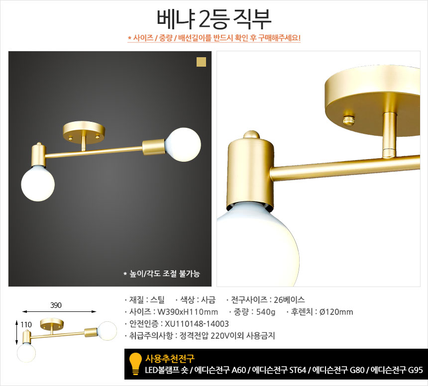 베냐 2등 직부/인테리어조명/직부등/복도등/실내등/베란다등/현관등/예쁜조명