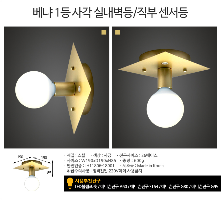 • 품명 및 모델명베냐 1등 사각 실내벽등직부 센서등