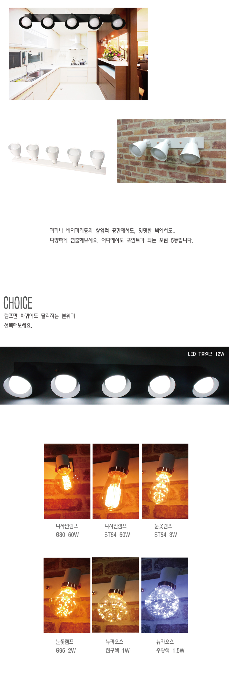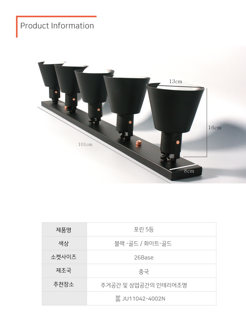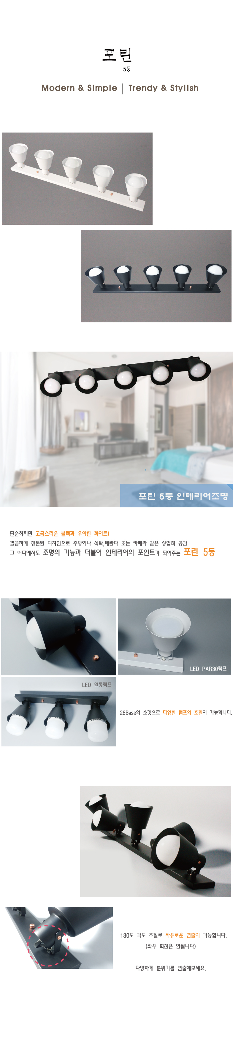 포린 5등 주방조명 블랙 인테리어조명 이미지/