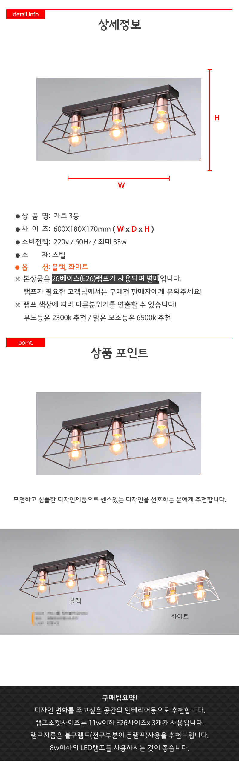 <상품명 : 카트 3등 33W LED 11wx3 모던스타일>
