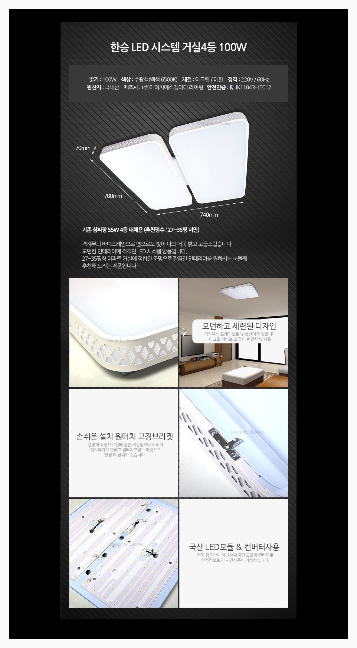 인테리어 홈조명 시스템 4등 LED거실등 100W