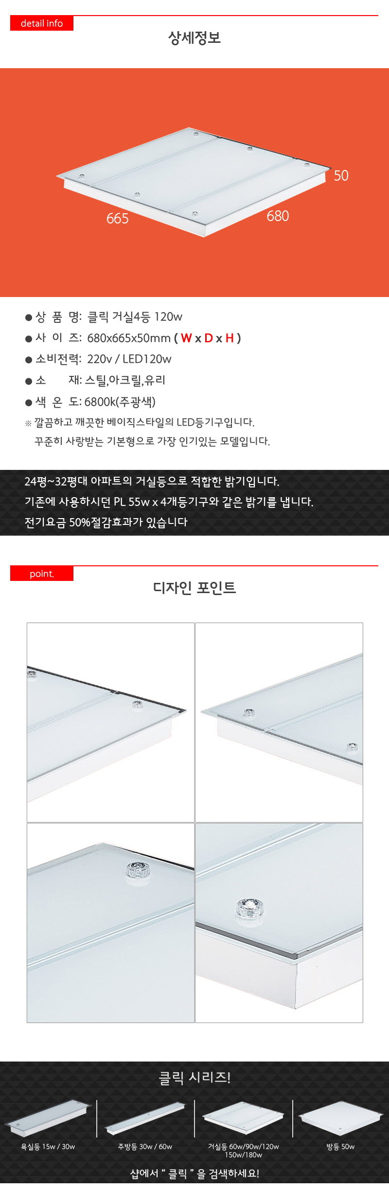 클릭 거실4등 LED 120W 절전형 이미지/