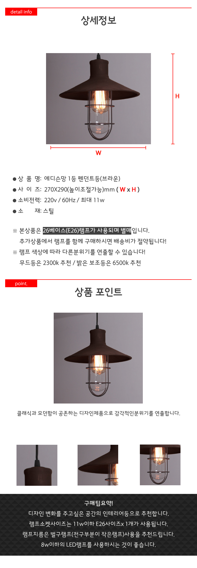 에디슨망 1등 펜던트등(브라운) 11W(LED11wx1) 이미지/