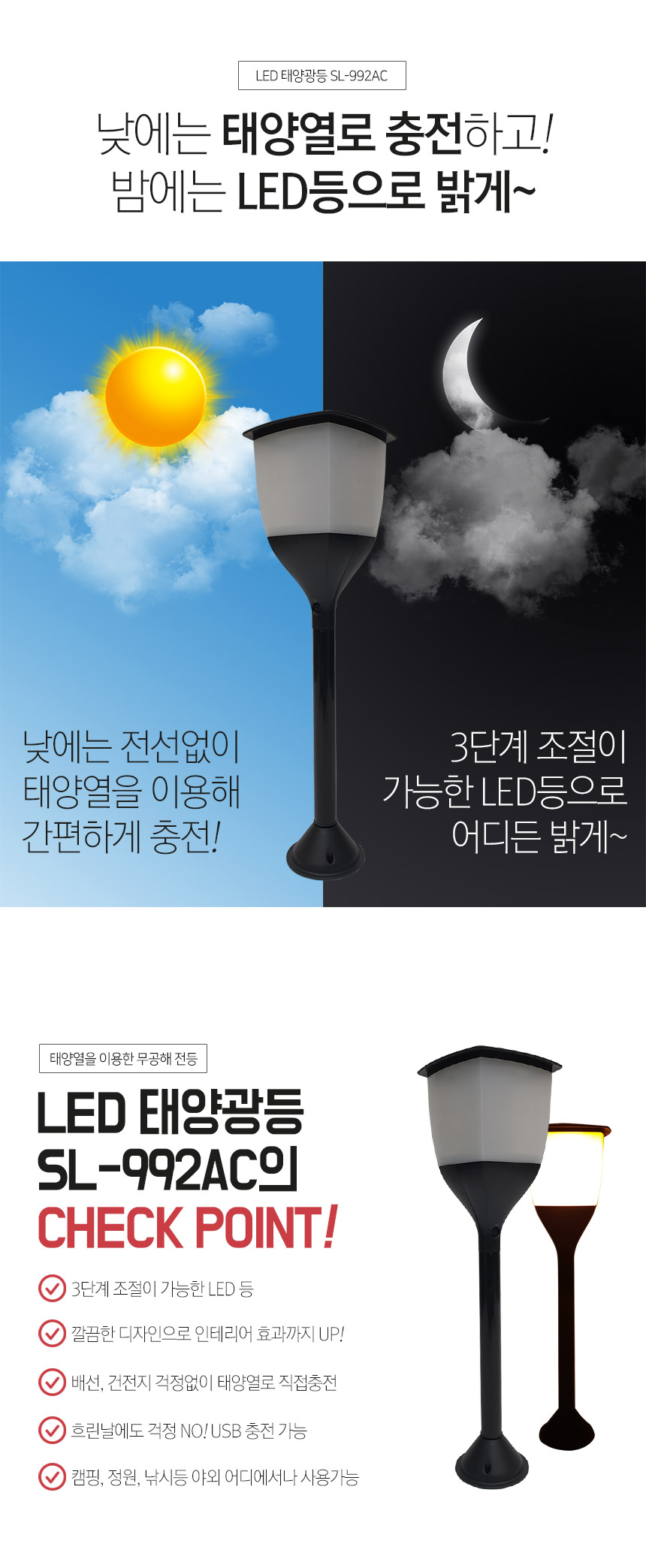 LED 태양열 가로등 SL-992AC 태양광정원등 잔디등