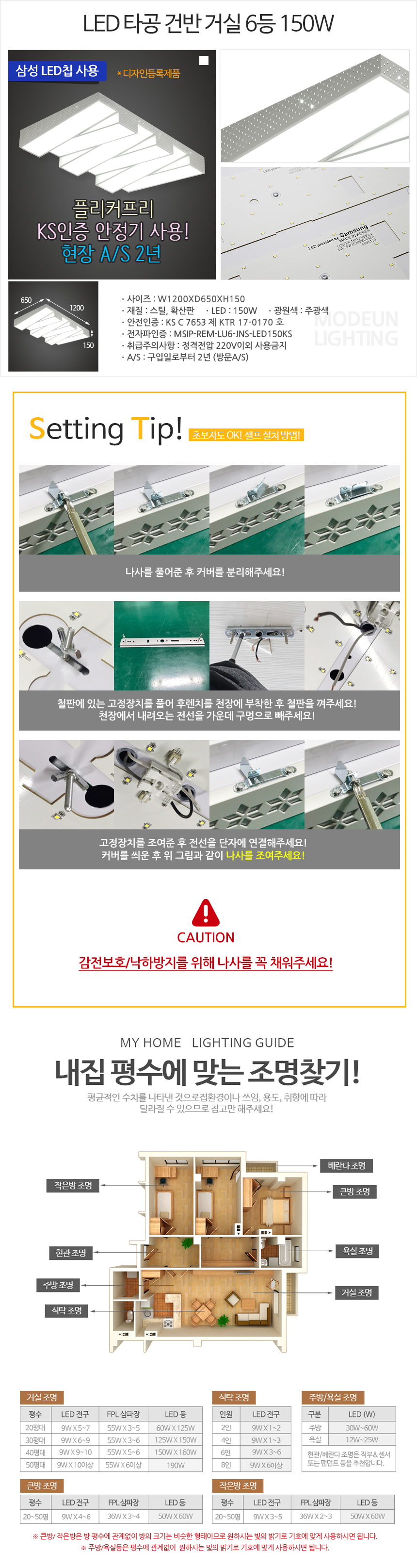 • 품명 및 모델명LED 타공 건반 150W 거실 6등