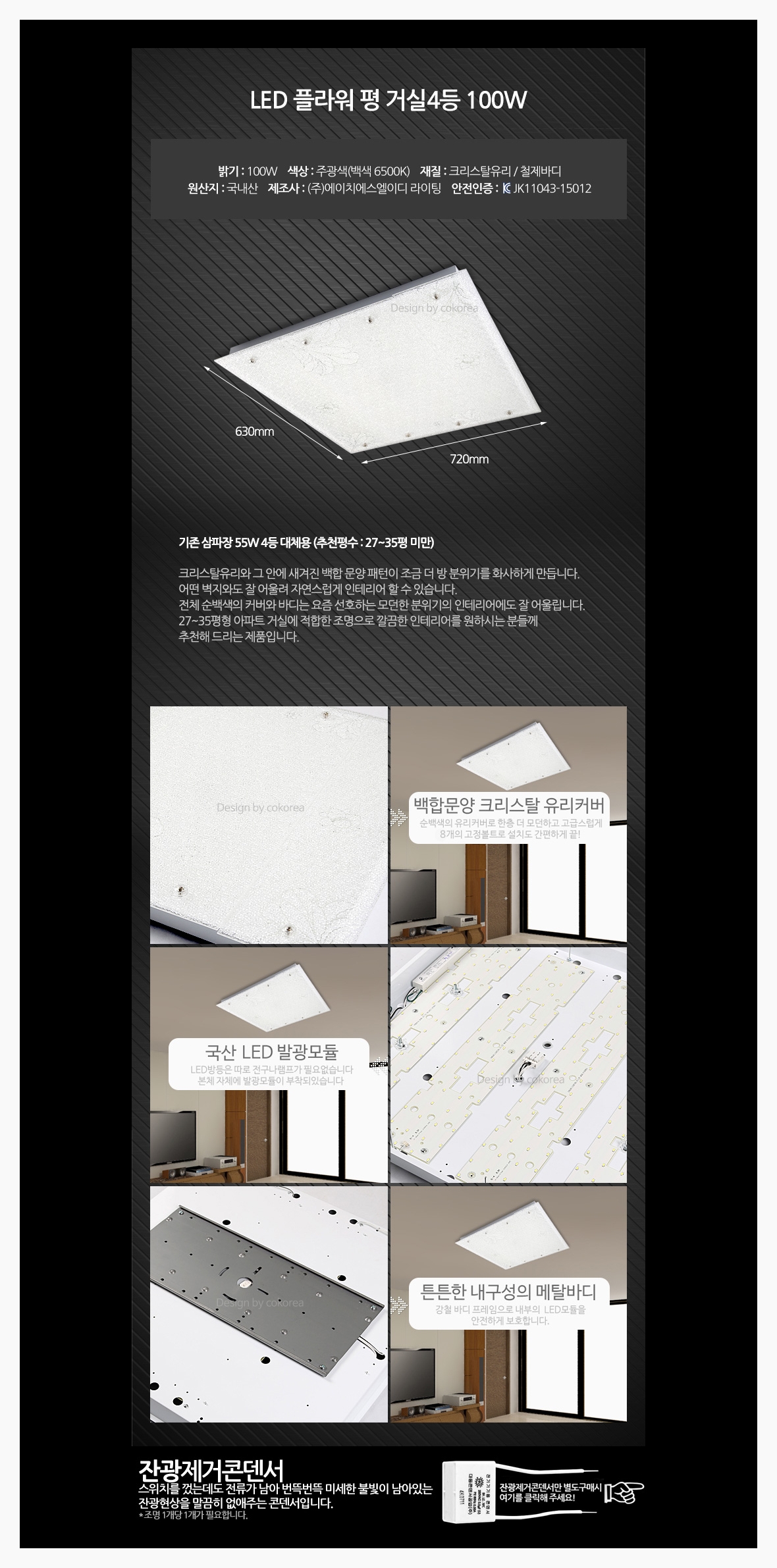 인테리어 홈조명 플라워 4등 LED거실등 100W