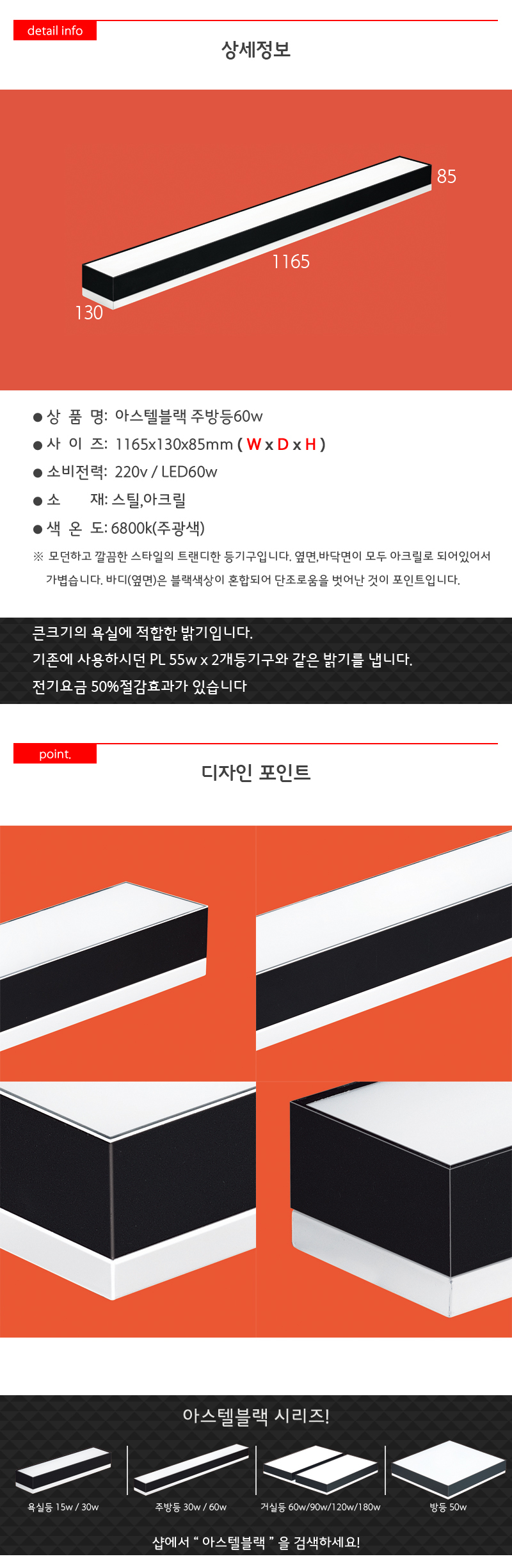아스테블랙 주방등 LED 60W 절전형 주방등 이미지/