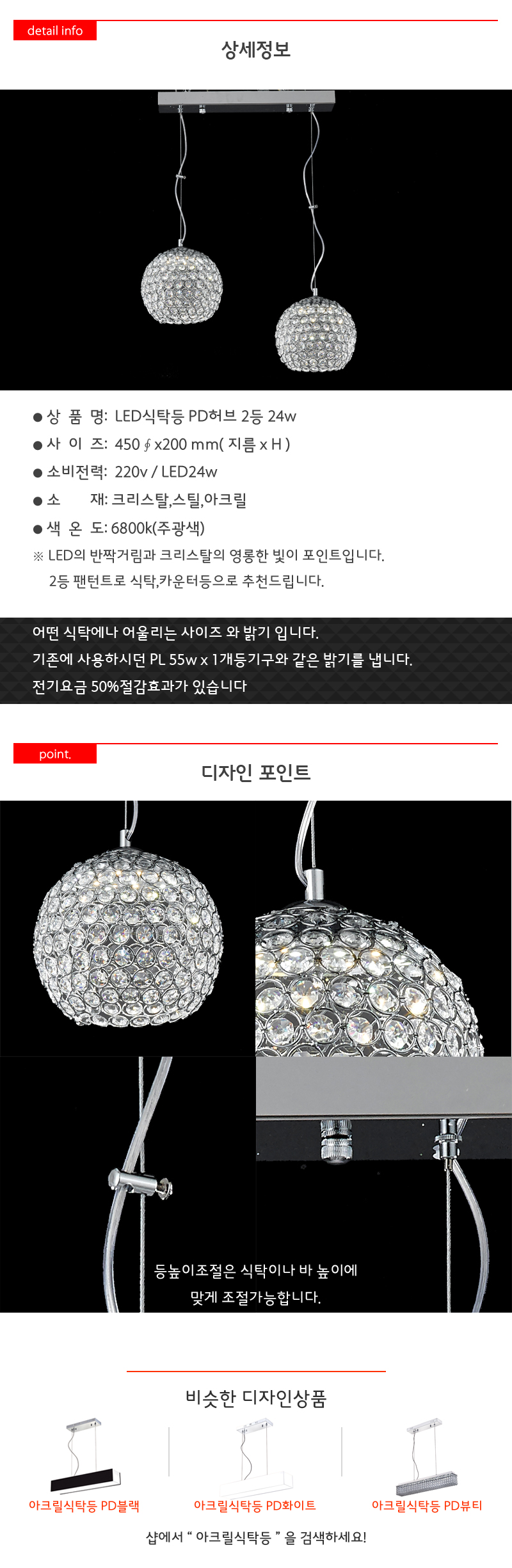LED 식탁등 PD허브2등 24W 식탁등 원형