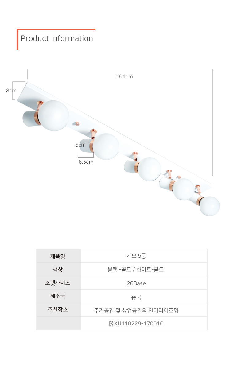 모리 5등 주방조명 화이트 인테리어조명