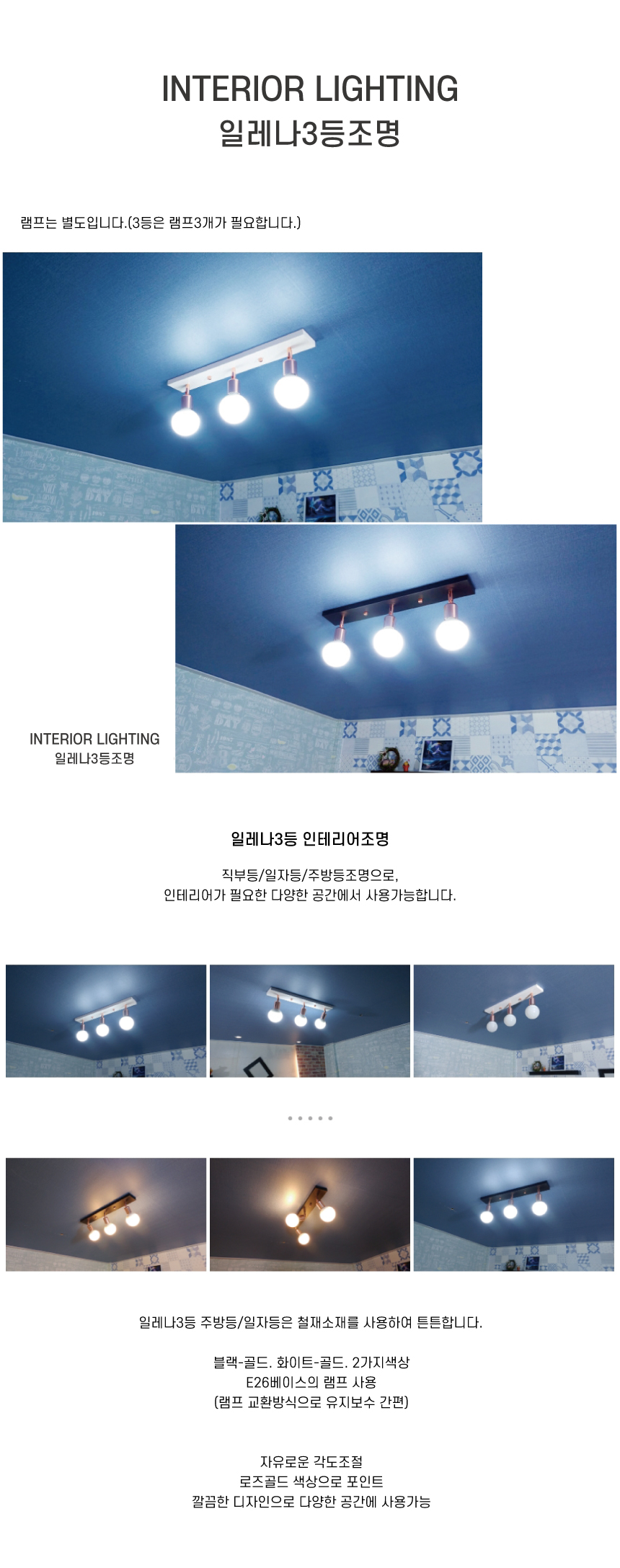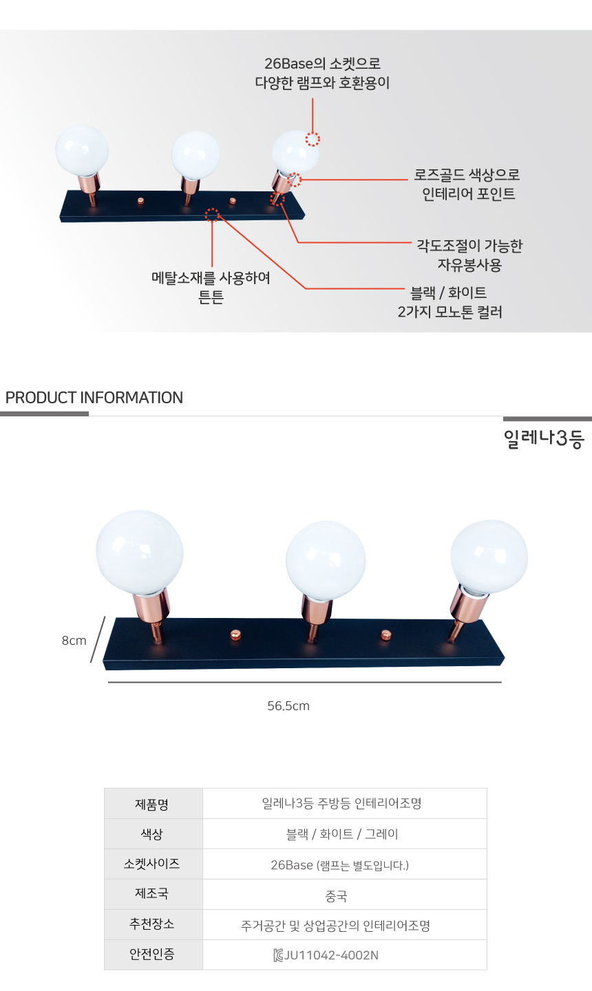 일레나 3등 주방조명 블랙 인테리어조명