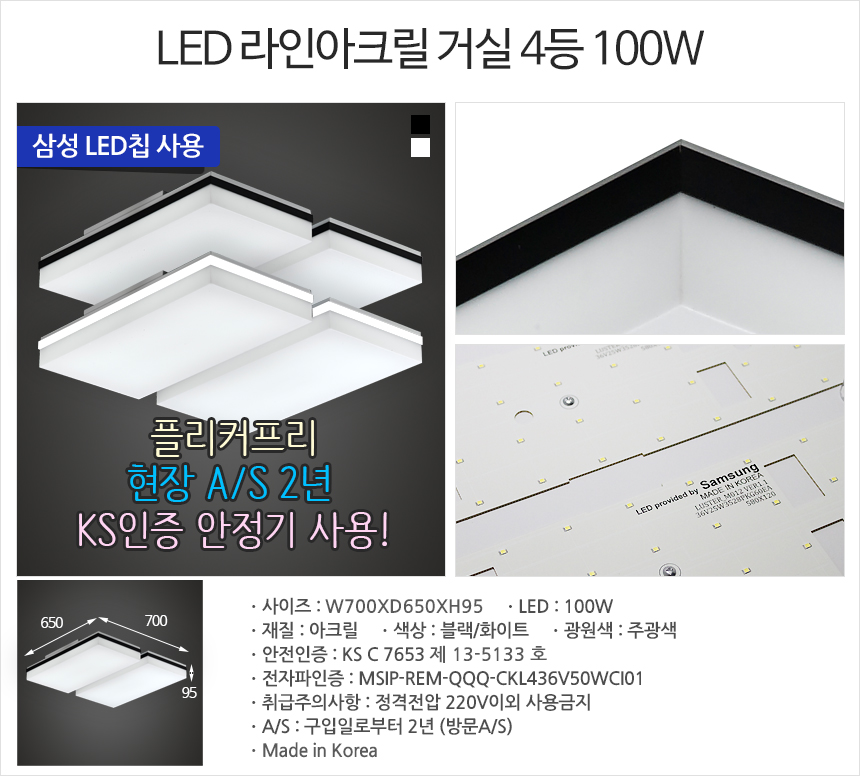 • 품명 및 모델명LED 라인아크릴 거실 4등 100W
