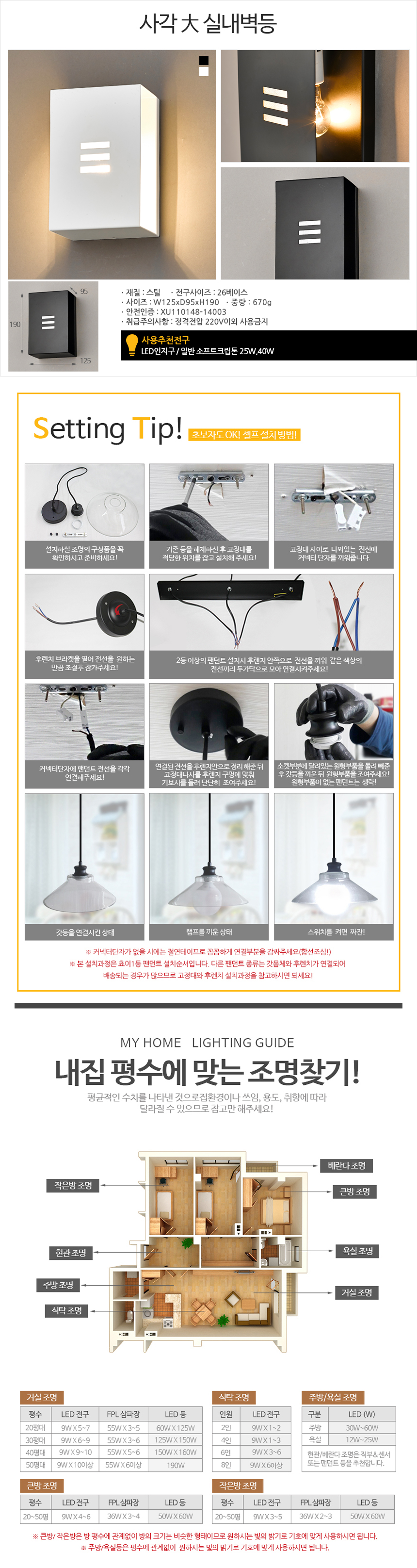 • 품명 및 모델명사각 대 벽등