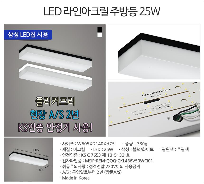 • 품명 및 모델명LED 라인아크릴 25W 주방등