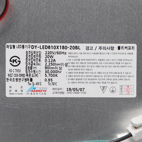 품명및 모델명 : LED평판 슬림베젤 엣지/610*180 25W ★주광★ KS