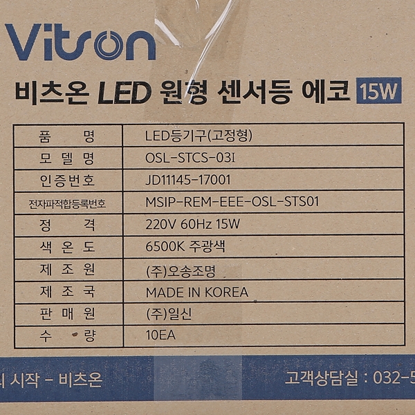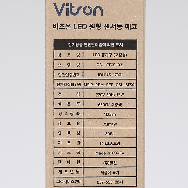 품명 및 모델명 : 원형 LED 센서등 에코/15W ★주광★ 국산