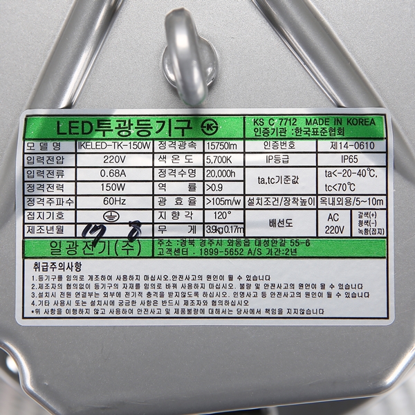 품명 및 모델명 : 공장등 LED/150W 주광 KS인증 ★갓포함