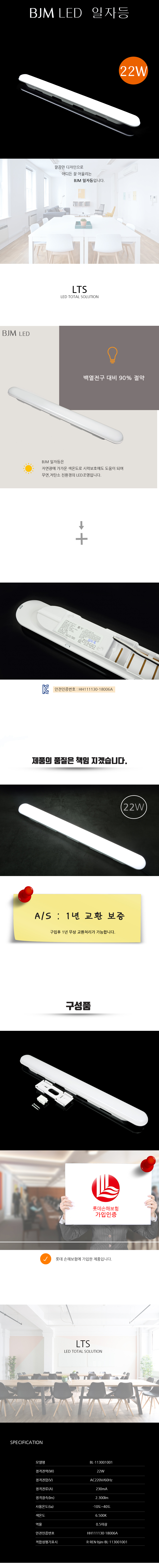 국산 22W LED일자등 깔끔한디자인 최고의 밝기/국산LED/조명/일자등/주방조명/거실조명 이미지/