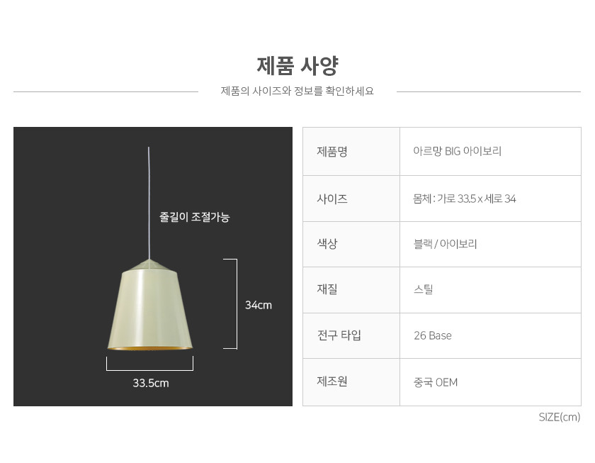 아르망 대 1등 아이보리 / 식탁조명 포인트등 이미지/