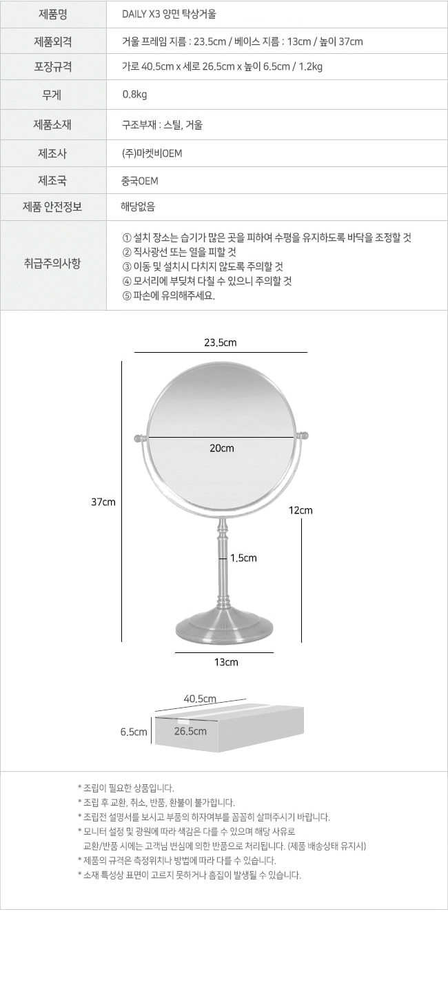 DI 마켓비 양면 탁상거울 화장거울 확대거울 이미지/