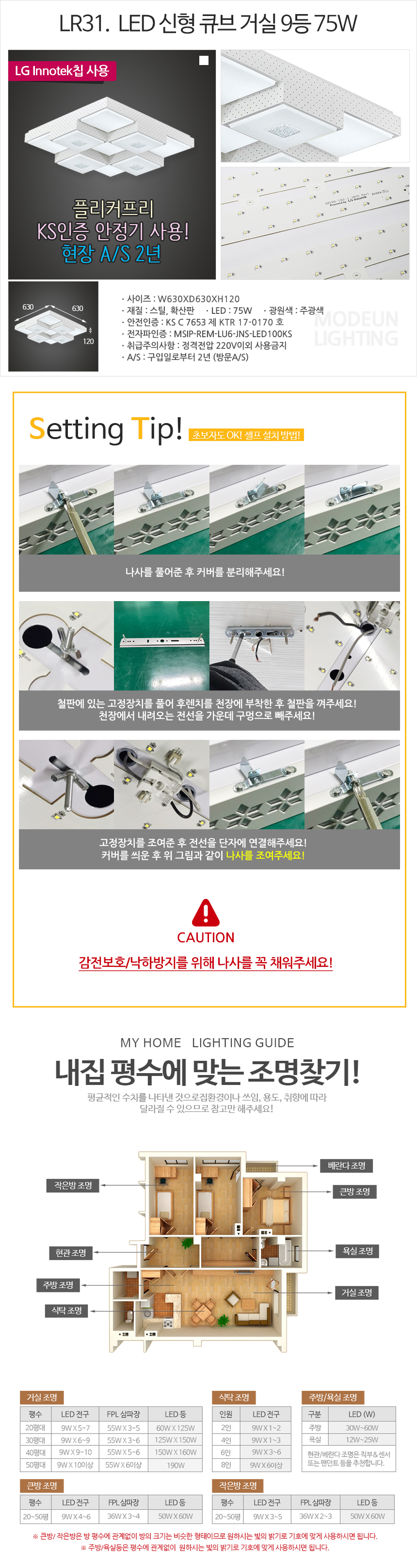 • 품명 및 모델명LED 신형 큐브 75W 거실 9등