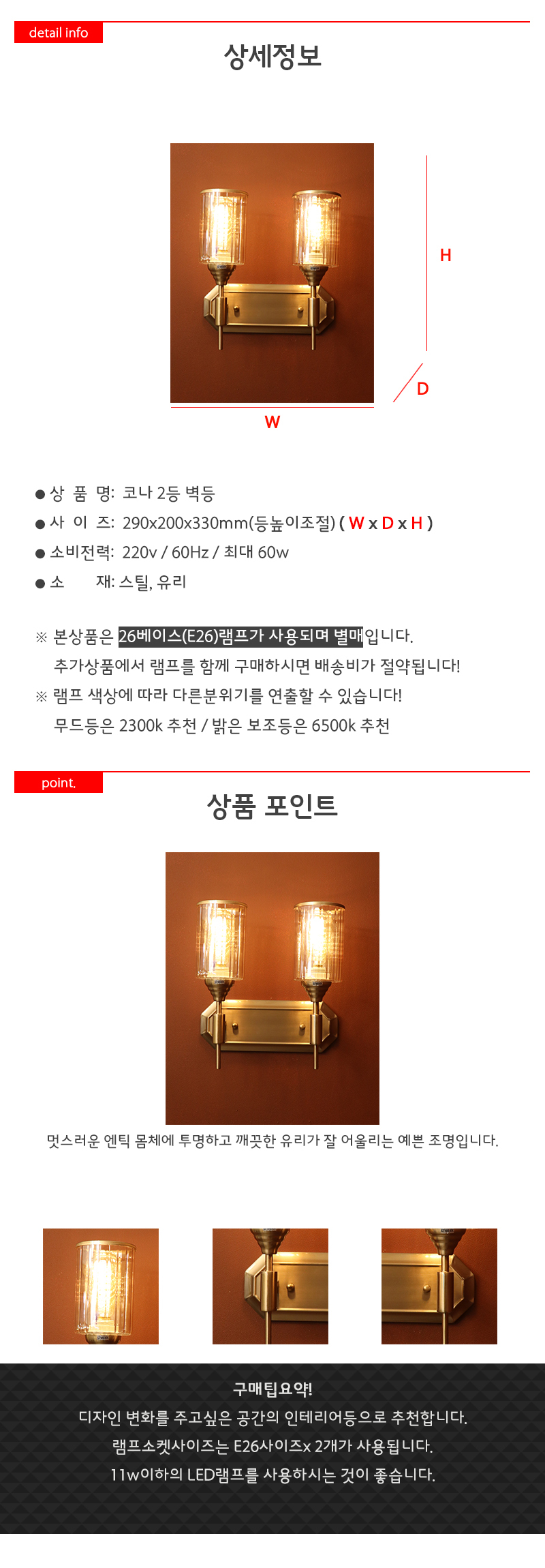 코나 2등 벽등 벽등 형광램프 투광기램프