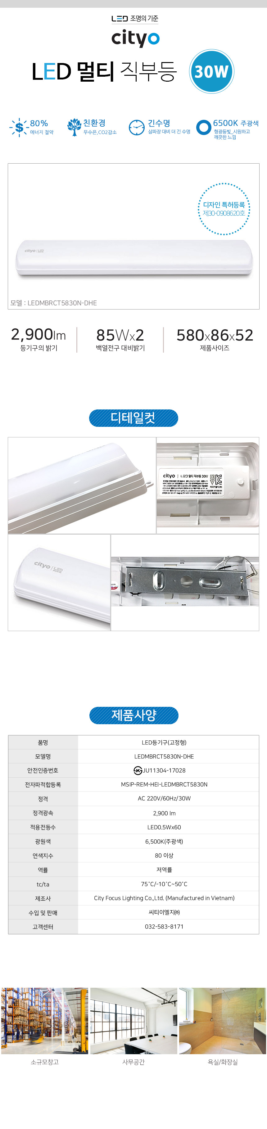 [CITYO씨티오] LED 멀티 직부등 20W/30W 주광색 조명 이미지/