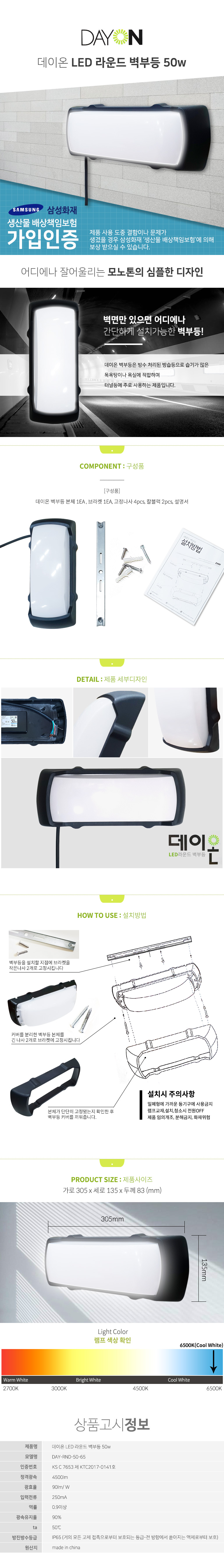데이온 LED 라운드 벽부등/터널등 50w 이미지/