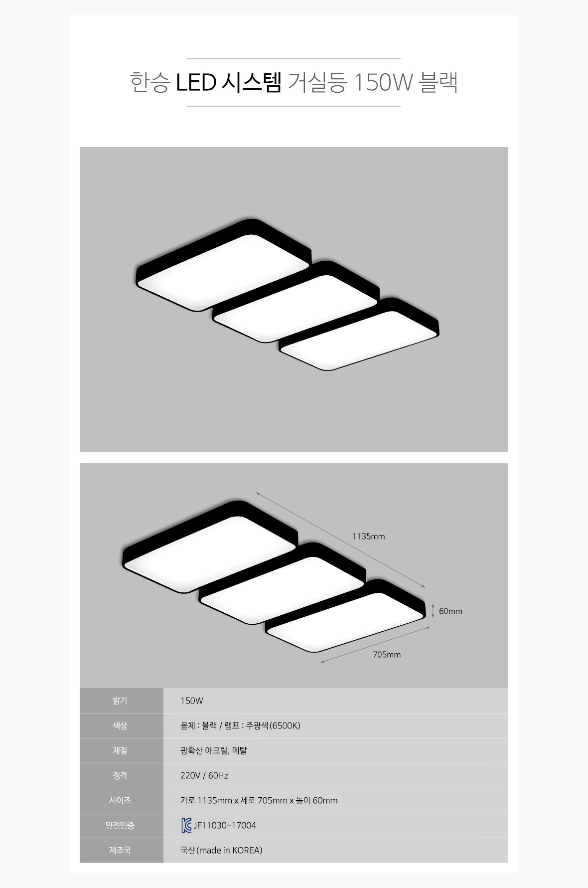 인테리어 홈조명 무타공 시스템 LED거실등 150W