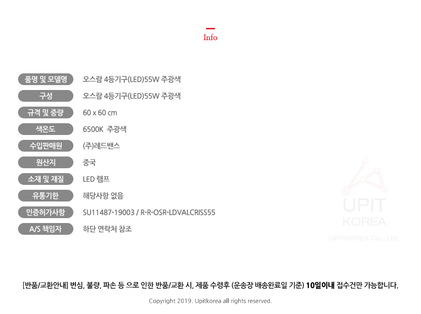 오스람 4등기구(LED)55W 주광색2925 이미지/