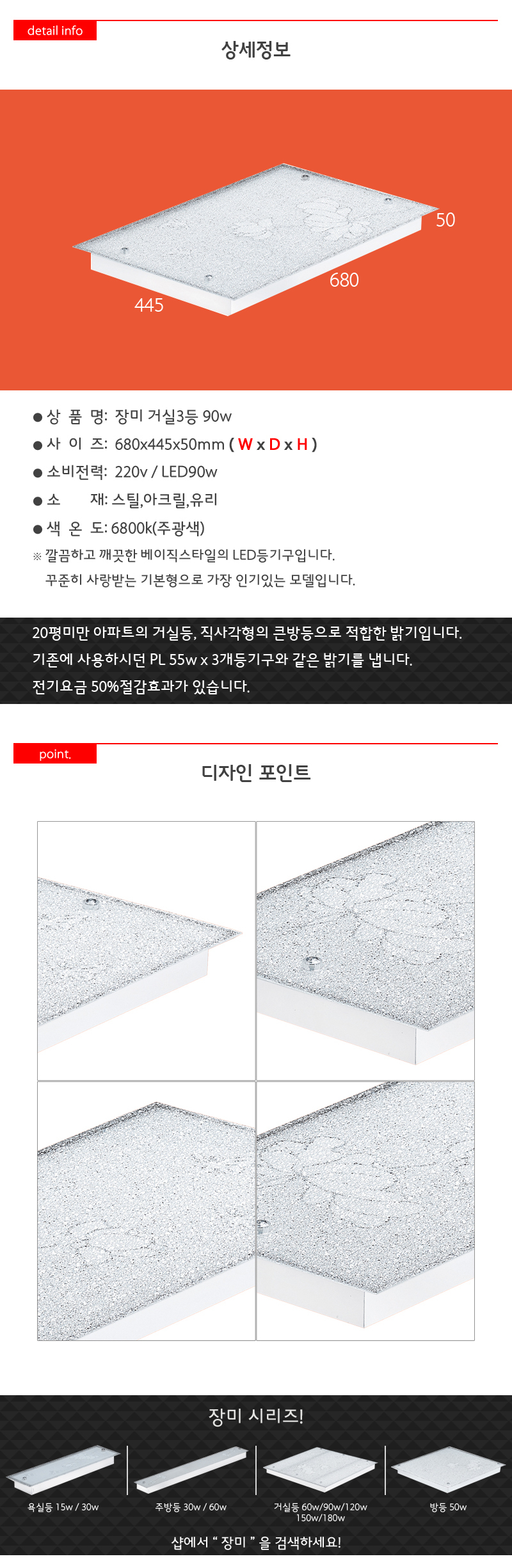 장미 거실3등 LED 90W 절전형 거실등 원 이미지/
