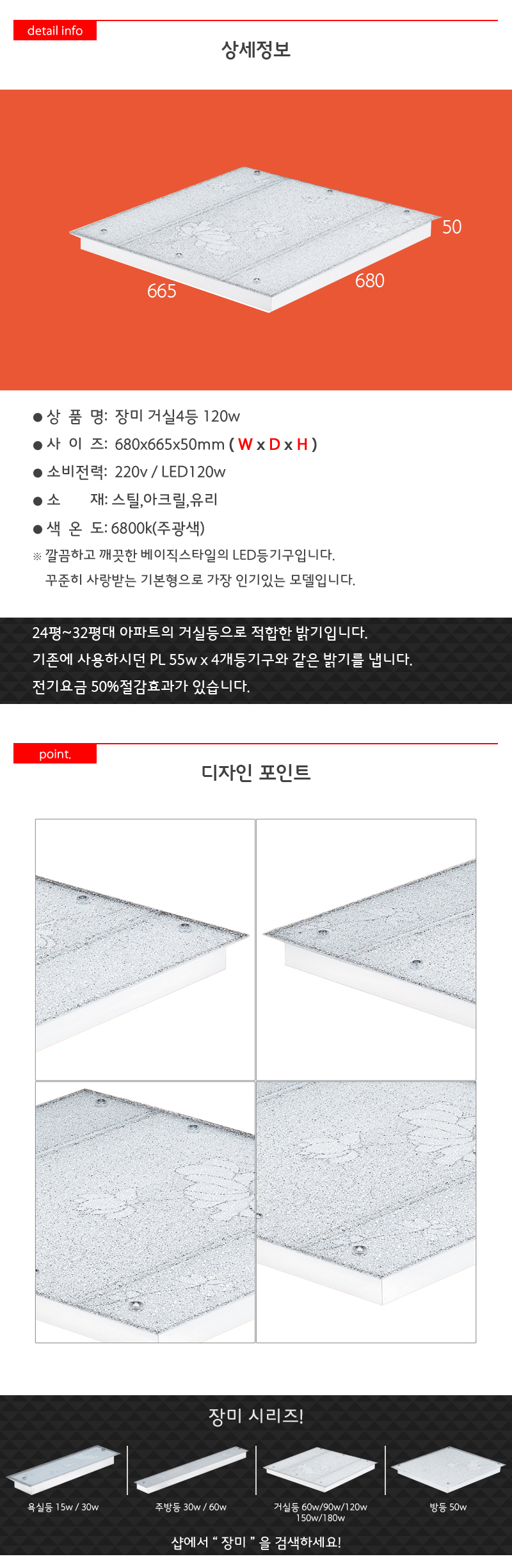 장미 거실4등 LED 120W 절전형 거실등 이미지/