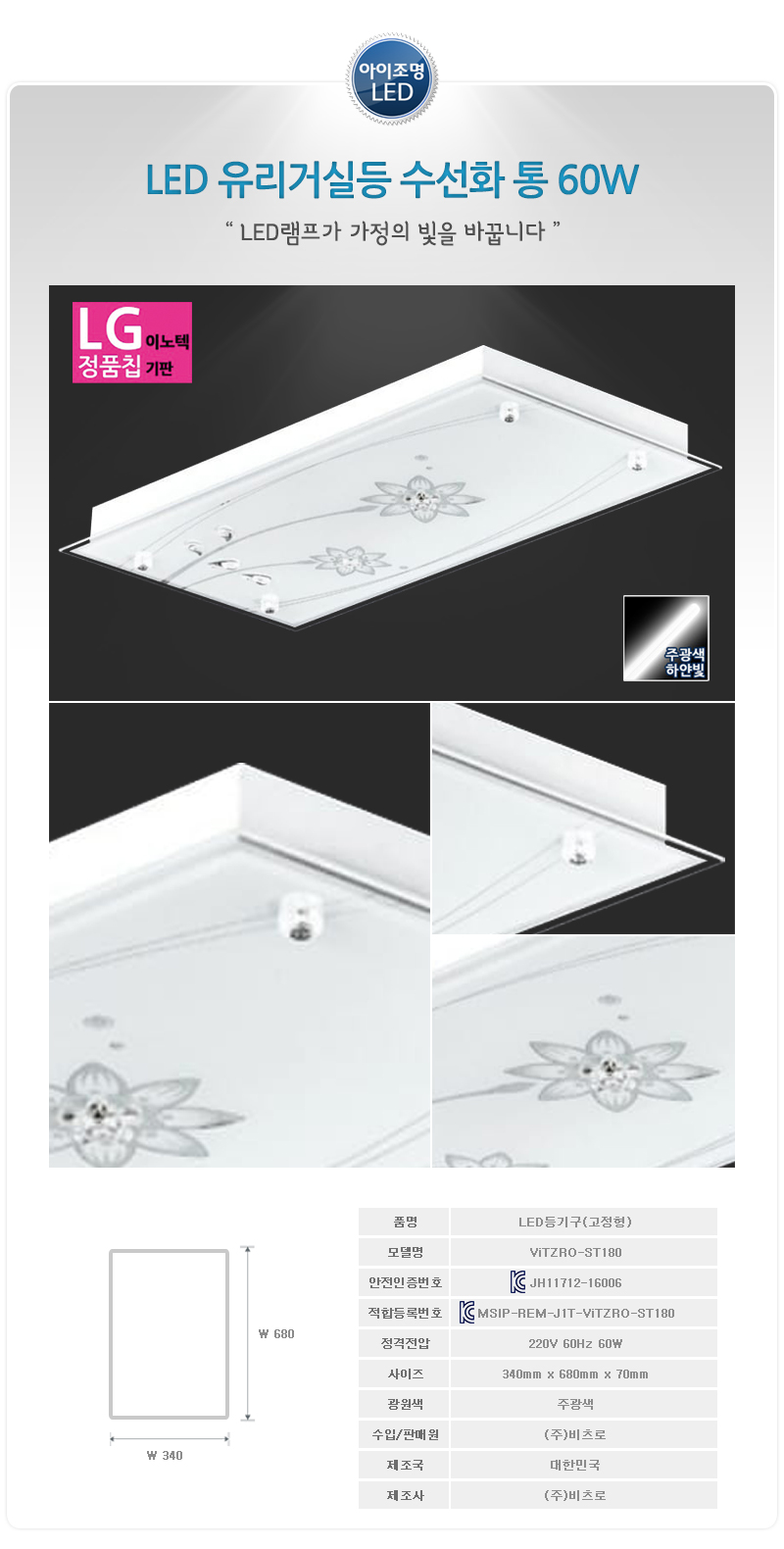 비츠로 LED유리거실등 (LG칩) 수선화 통 60W/주광색(하얀빛)