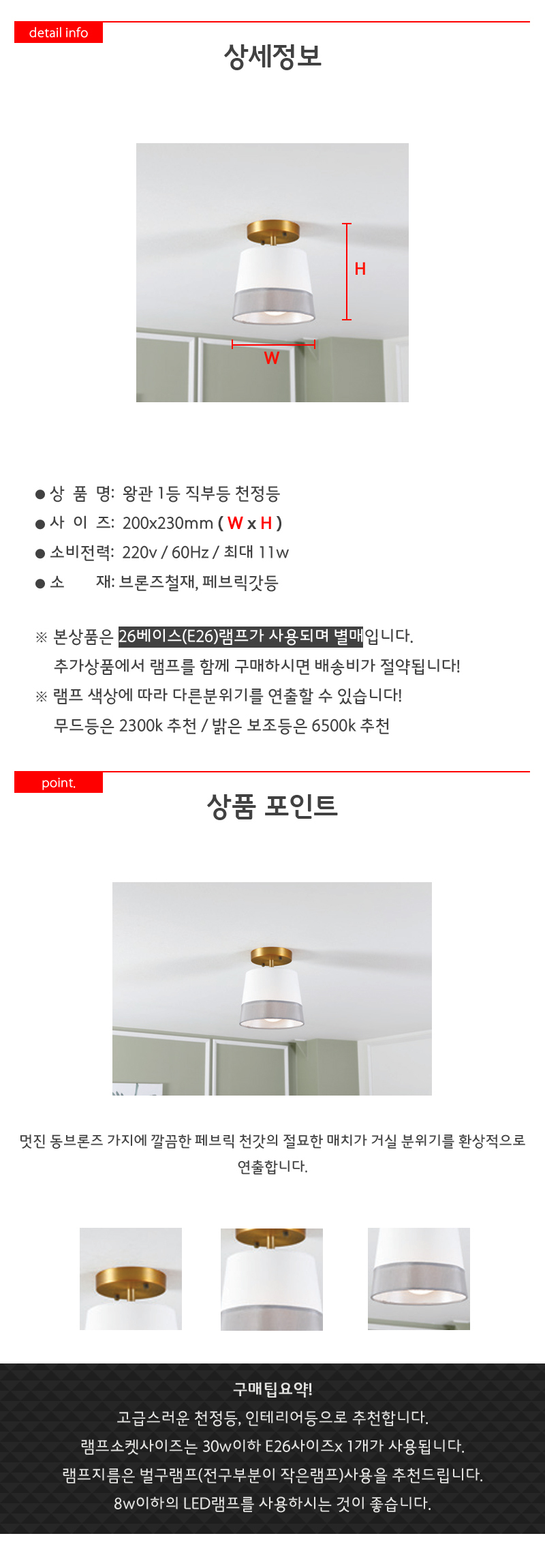 왕관 1등 직부등 천정등 11W(LED11wx1) 클래식디자인