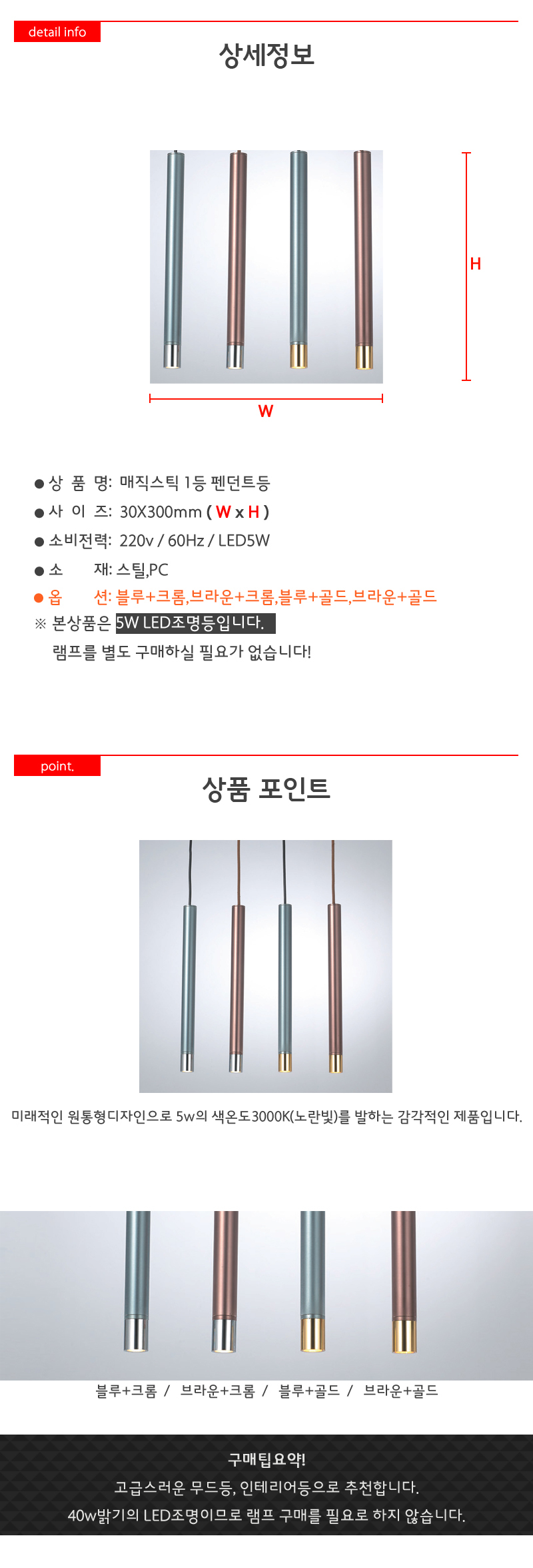 매직스틱 1등 펜던트등 LED5W 모던스타일