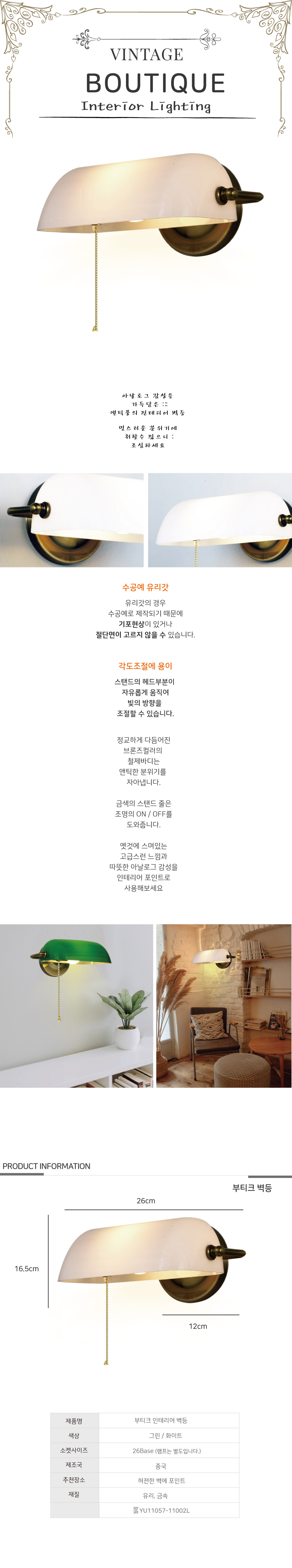 인테리어 엔틱벽등 부티크B/R 화이트(E26) 램프포함 이미지/