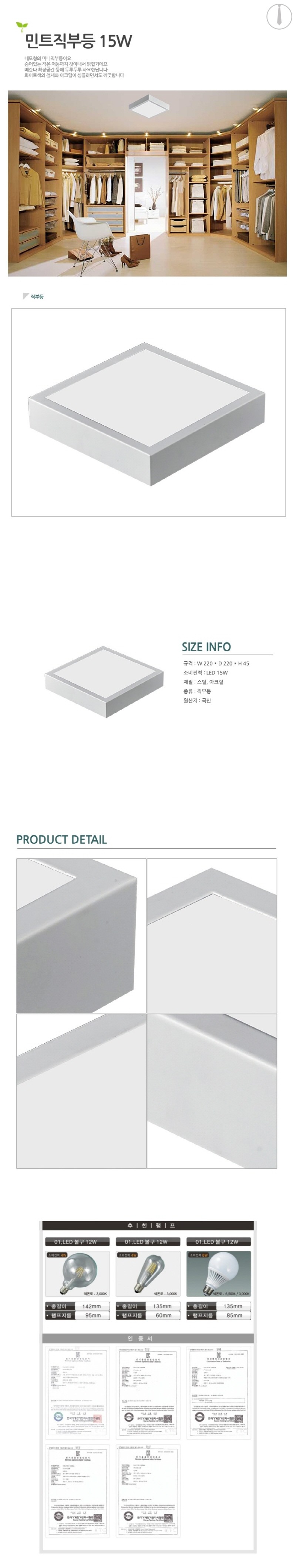 민트직부등 15W 천정등 형광램프 투광기램프 이미지/