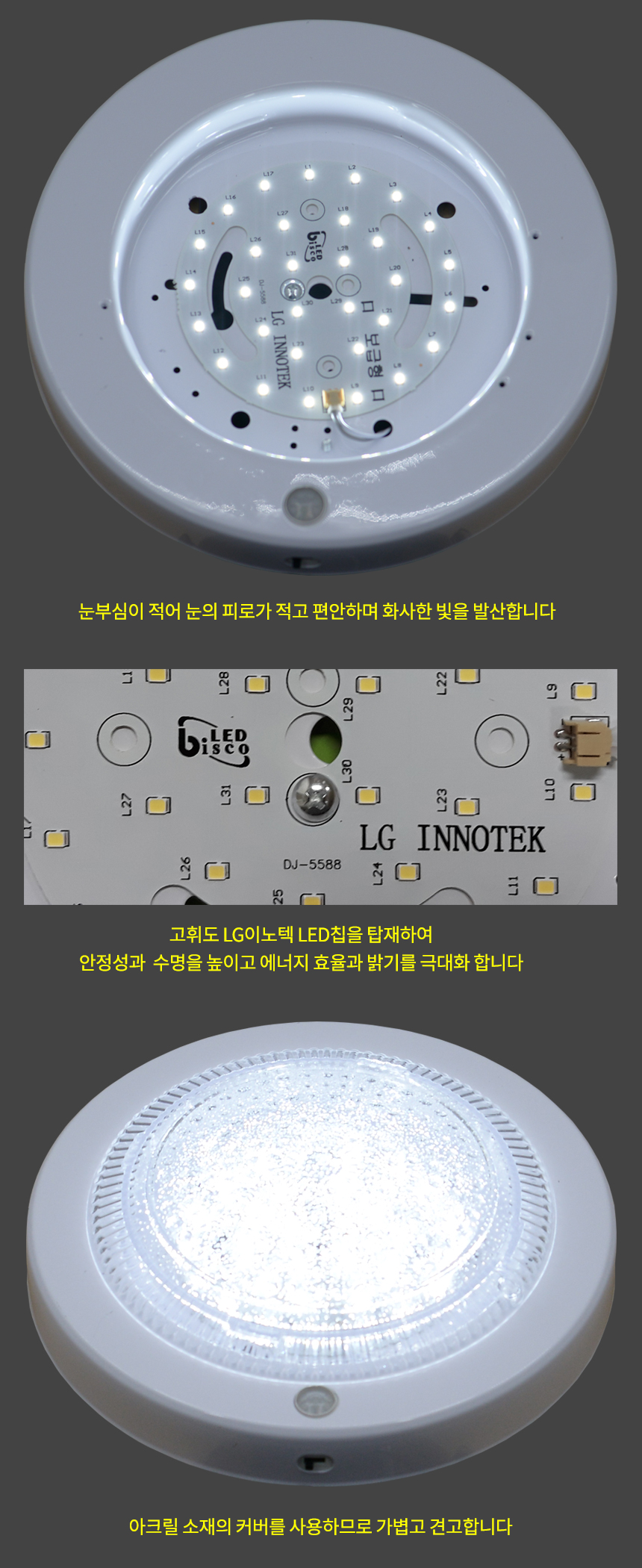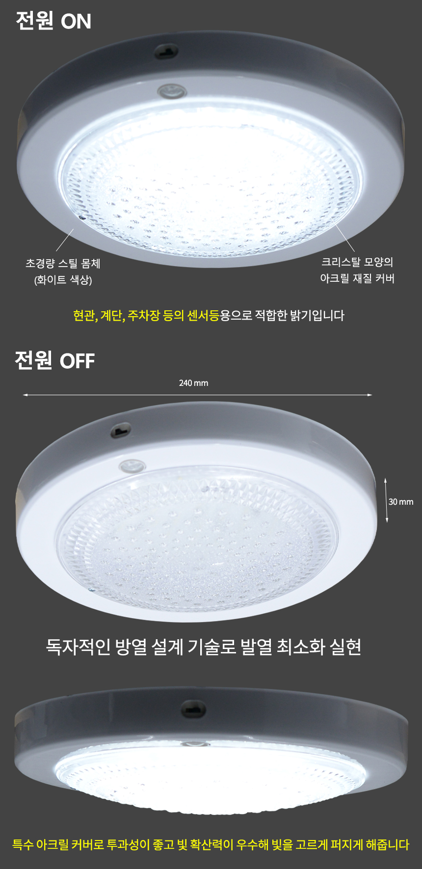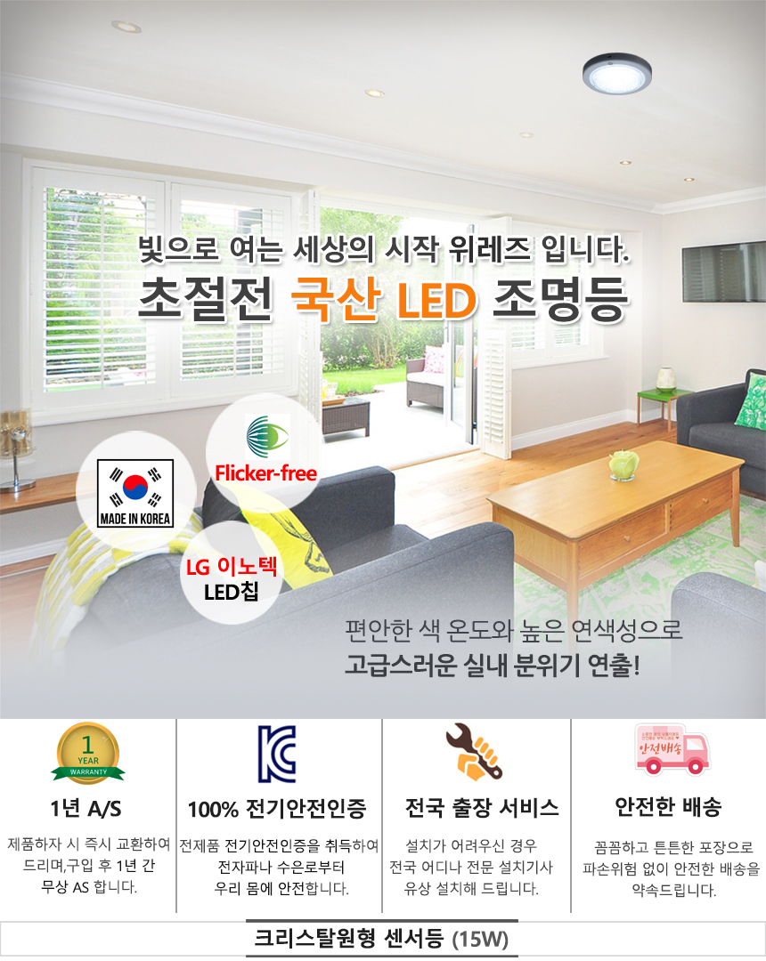 LG칩 국산 LED 조명 현관등 센서등 크리스탈 원형 15W