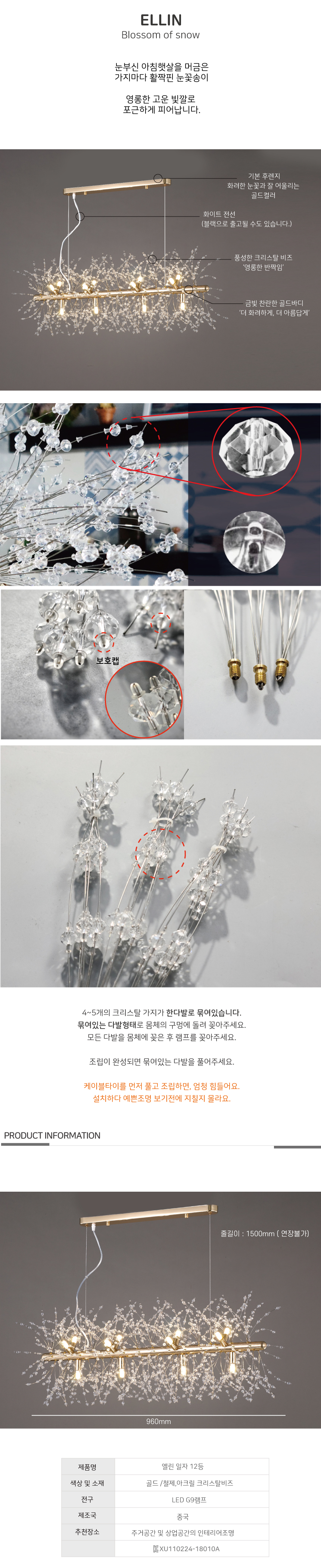 인테리어조명 엘린12등 크리스탈조명 일자주방등 식탁등