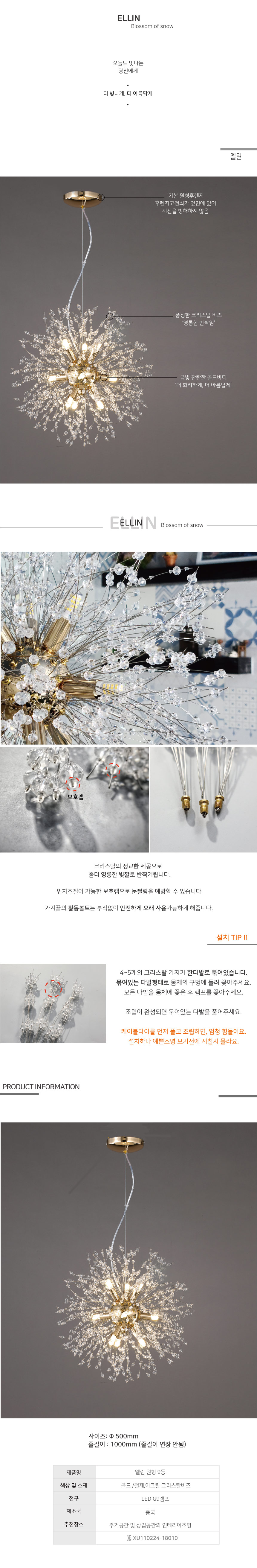 인테리어조명 엘린9등 크리스탈조명 원형주방등 식탁등 이미지/