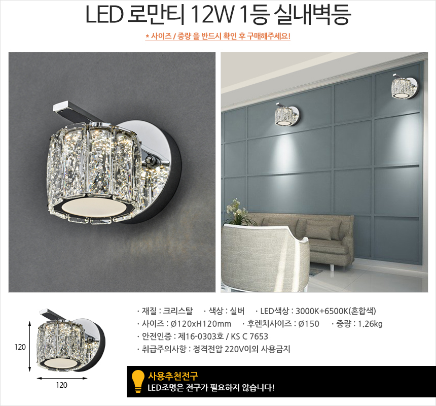 • 품명 및 모델명LED 로만티 12W 1등 실내벽등