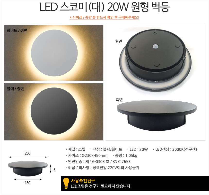 • 품명 및 모델명LED 스코미(대) 20W 원형 벽등