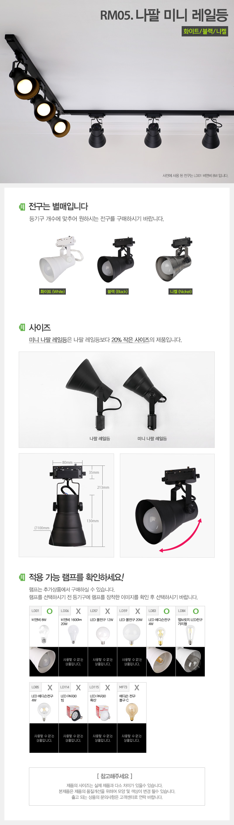나팔 미니 레일등기구 화이트 블랙 118227 이미지/