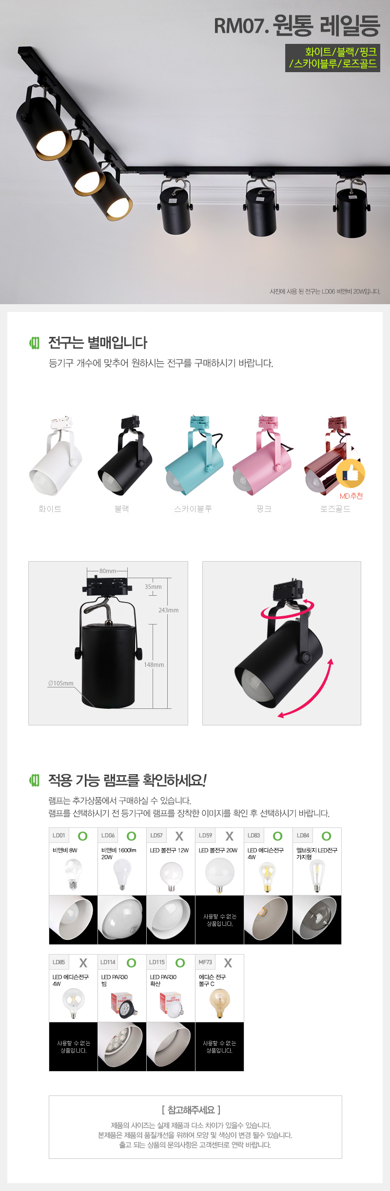 원통 레일등기구 핑크 로즈골드 118279 이미지/