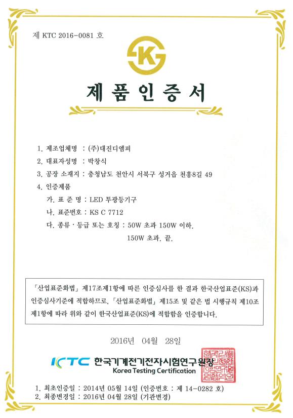안전인증번호 : KTC 2016-0081호