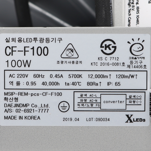품명 및 모델명 : 공장등 LED <고효율>/100W(DC)주광 체인형(CF-F100P)