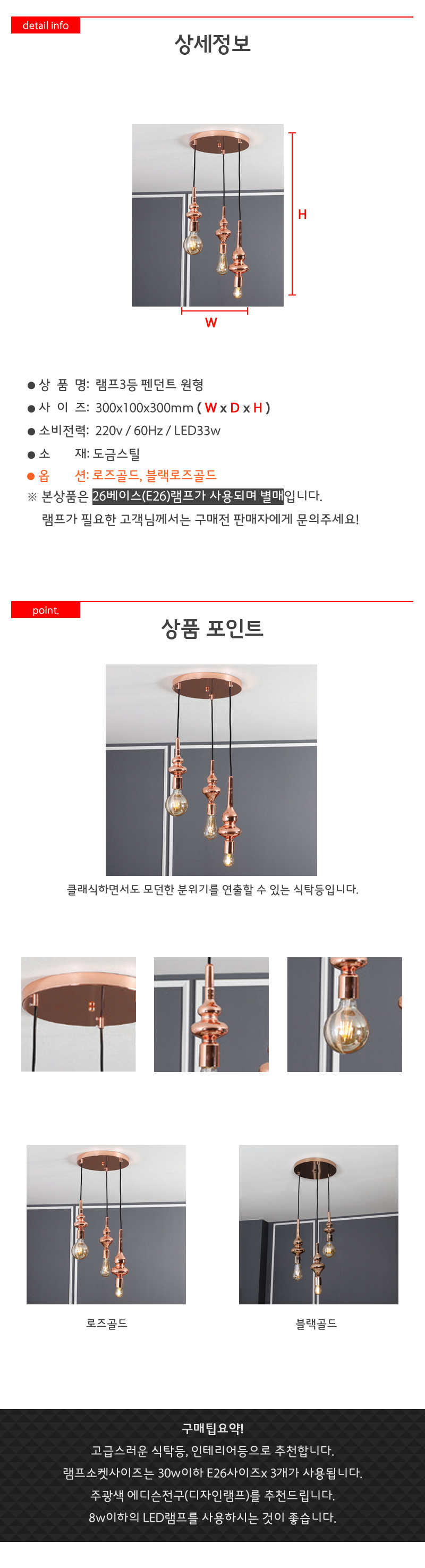 <상품명 : 램프3등 펜던트 원형 33W(LED11Wx3) 클래식디자인>