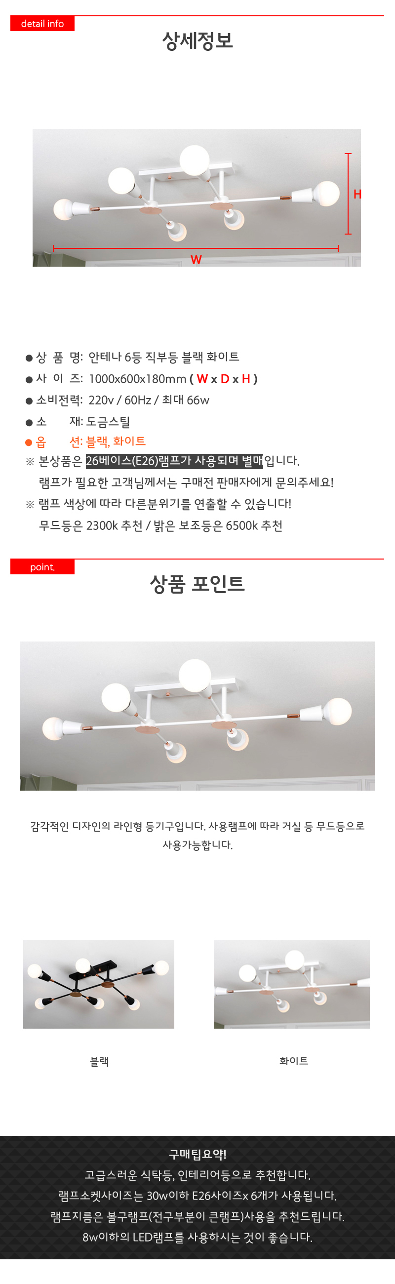 <상품명 : 안테나 6등 직부등 블랙 화이트 66W 천정등>