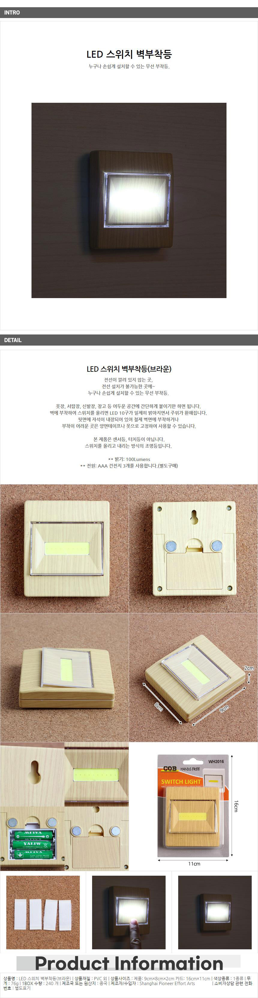 <상품명 : 간편설치 LED 부착등-브라운 무드등 무드램프 조명등>